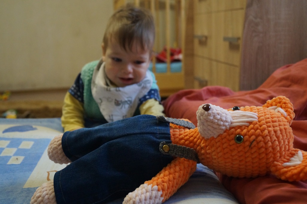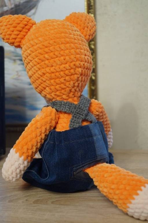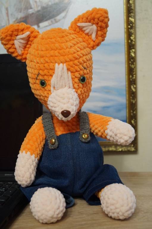 Такой вот лисёнок из толстой плюшевой пряжи связался дедушке на 23 февраля. Недостатки есть, главный - нужен был крючок поменьше, тогда игрушка получился бы "круглее", не такая вытянутая. Мордочка не идеальная.
