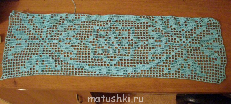 Незабудка,очень красивое вязание.Я мечтаю занавеску и скатерть такую связать.