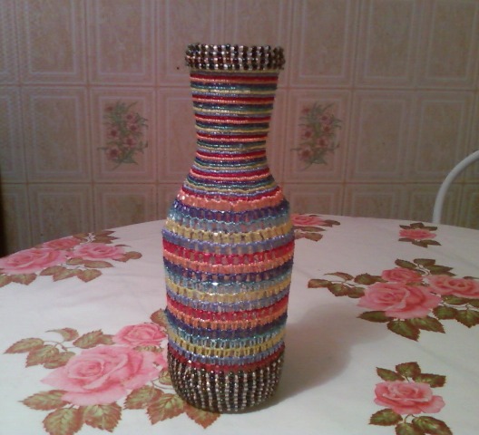 Девочки вот я закончила делать из бутылки вазу. Посмотрите что из этого получилось.
