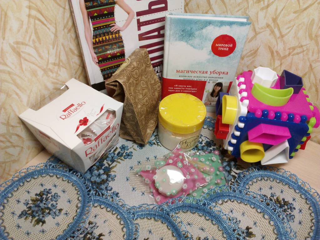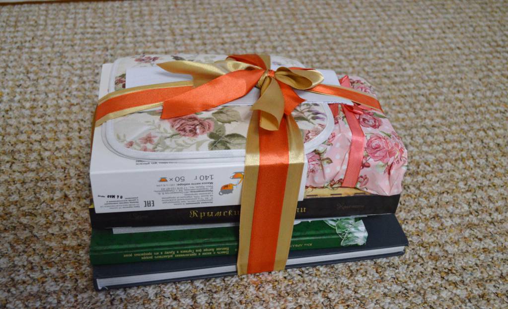 Посылка было так красиво оформлена: После развязывания ленточек я обнаружила: