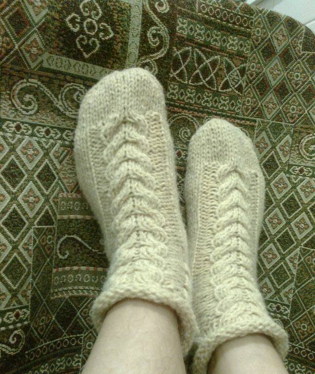 Маленькие носочки в обувь из деревенского пуха 5062п. + варежки 8306п. = 13368 петель.