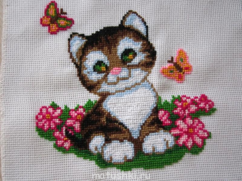 Моим девчатам подарили по вышивальному набору: котика и собачку. Сегодня закончила кота. Ничего особенного, но вышила с интересом.
