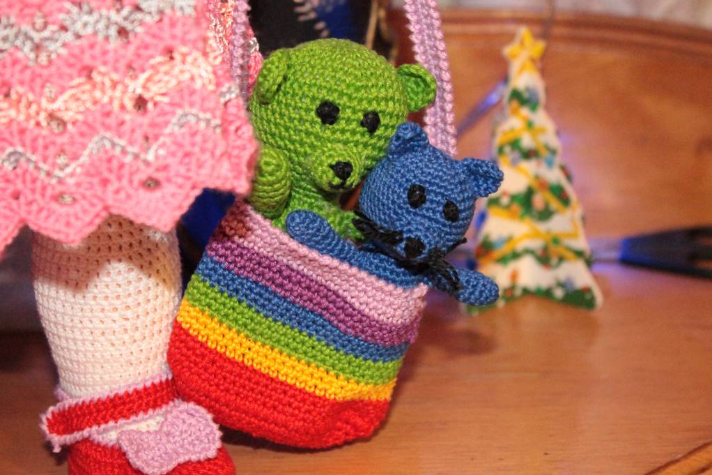 Решила съэкономить на подарке и Зое на 7 лет сделала такую вот красотку. Старая кукла с волосами мочалкой была отмыта, волосы с кондиционером расчесаны, крючком связала наряд и аксессуары.