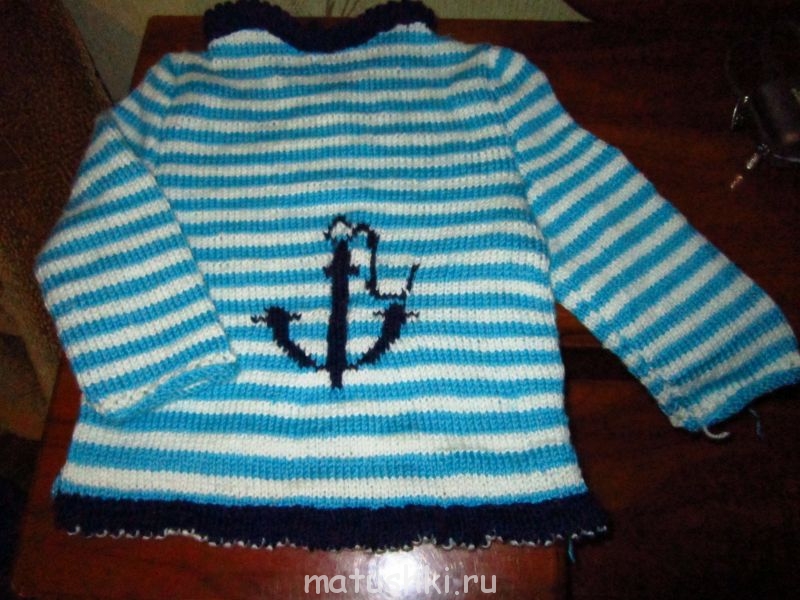 Довязала наконец свитер-тельняшку.Только еще не постирала и не отпарила.Был довязан рукав и планки - 3000 петель.