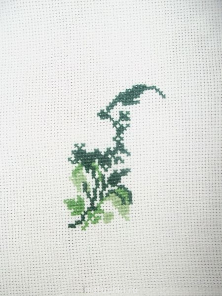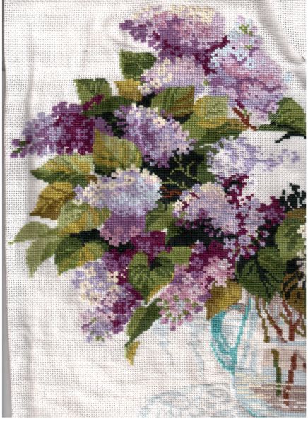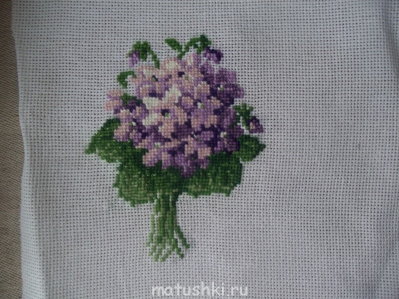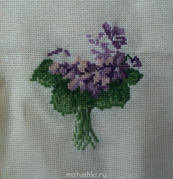 закончила букетик с фиалками(надо только сплести бантик и прикрепить к нему),начала другой букетик-с ландышами ,всего 901 крестик