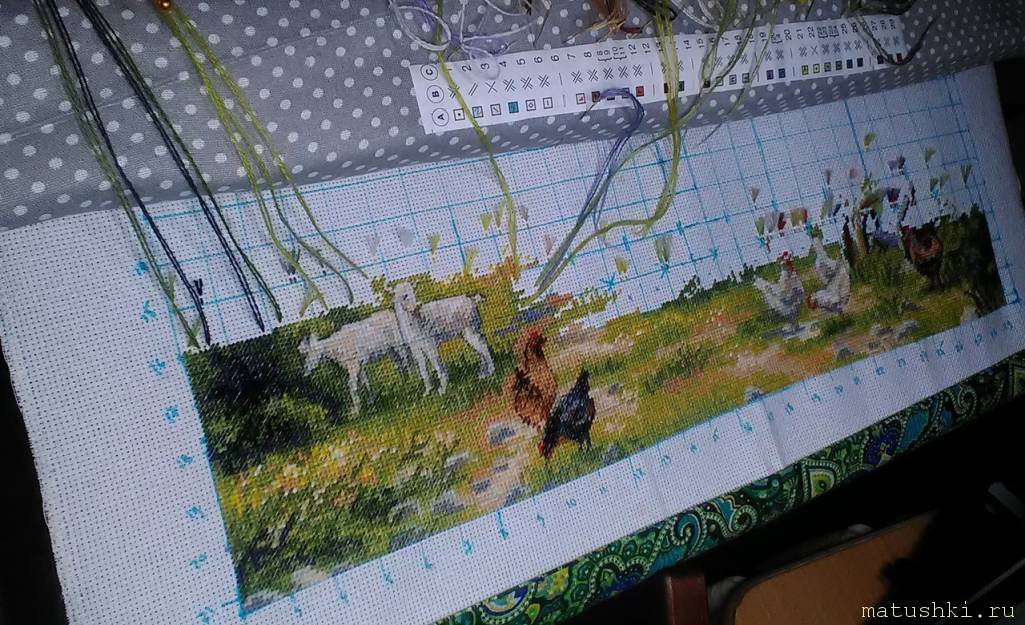 Только что закончила вышивку. Ещё даже не стирала. Как будет возможность, отдам в багетку