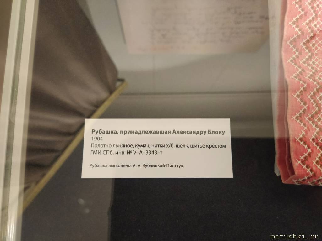 Она вышила для сына рубашку косоворотку с лебедями. Это была любимейшая вещь Блока.