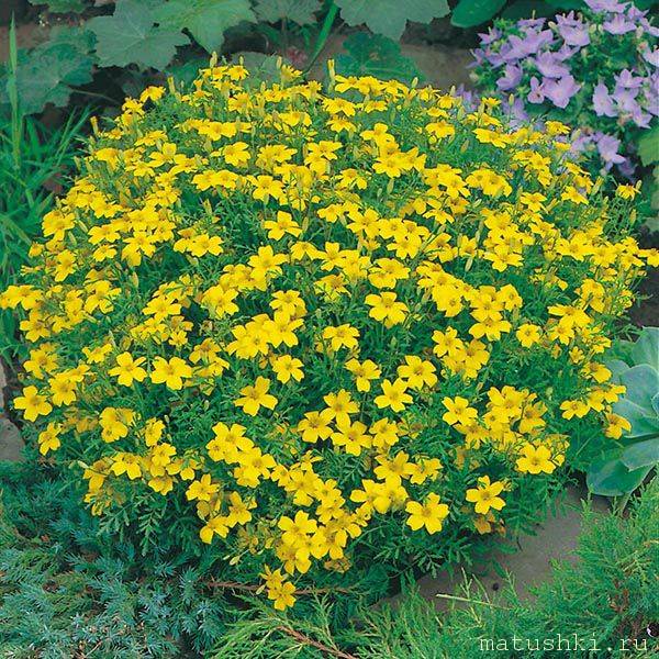 Посмотрите, может кто не знаком это тонколистные бархатцы, один кустик даёт такую шапку цветов. В этом году я тоже буду пробовать на работе.