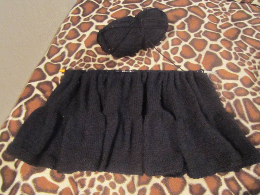 Начала вязать младшей теплую юбку в школу, нижний ярус готов: