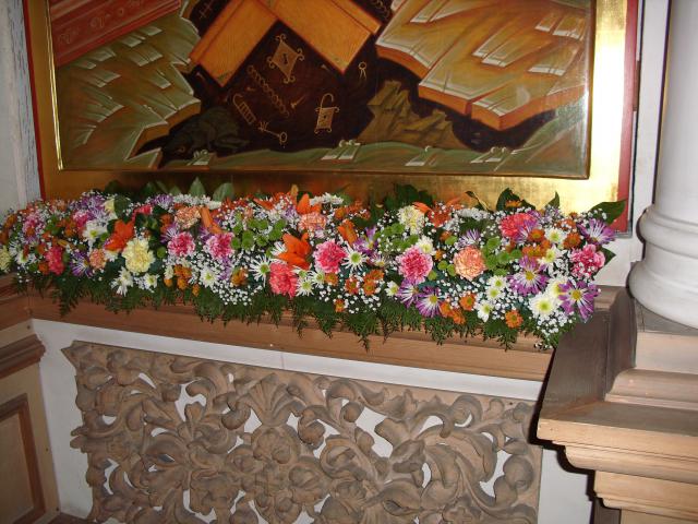 Так что я не рассуждаю, а делаю из того, что одобрили. Первое время вообще в ступоре была - как так, только белое? Даже на красный гиперикум надо было брать благословение. За несколько месяцев потихоньку начала включать цвет, что-нибудь не яркое и не крупное. Но для храма - по-прежнему только белое.
