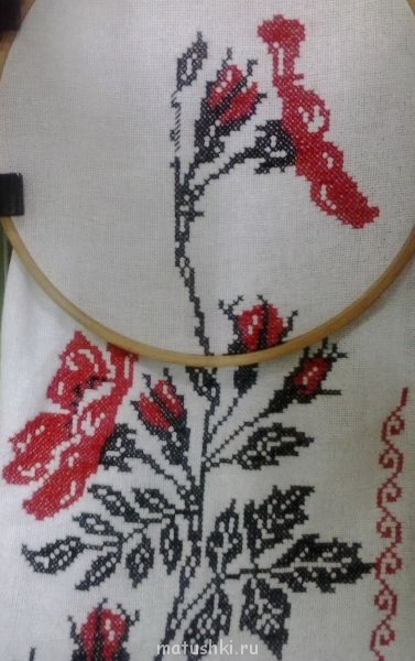 Я начала новую вышивку, на черной канве. Это будет фрагмент для декорирования сумки. Вопреки ожиданиям, на черной канве вышивать мне оказалось достаточно легко, может быть потому, что она довольно крупная.