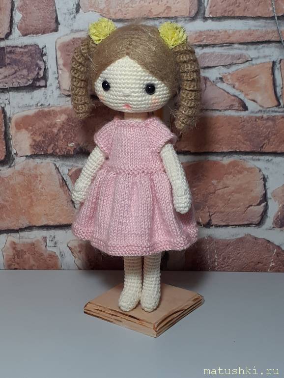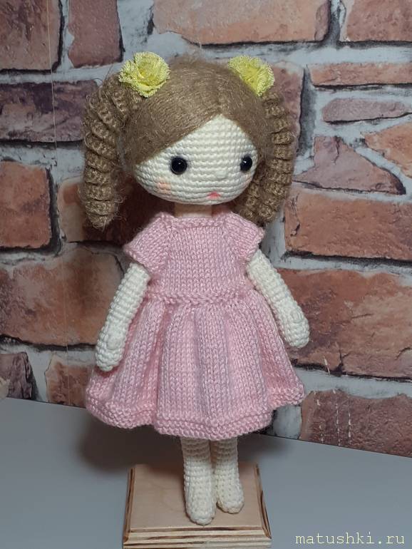 Лежала головушка... решила к ней все же тело связать и получилась вот такая куколка. Цвет реальный платья не передаёт, цвет в реальности невероятно нежный.