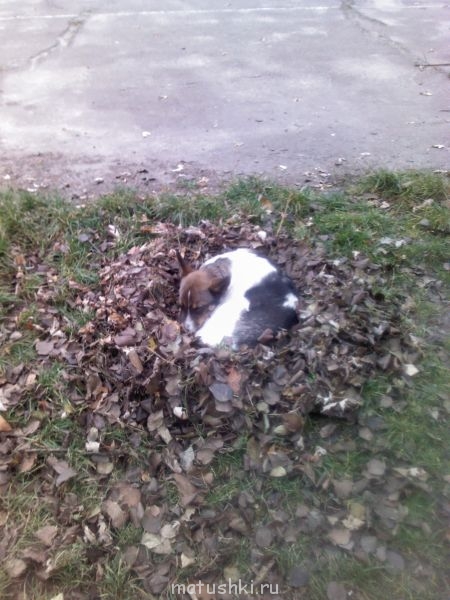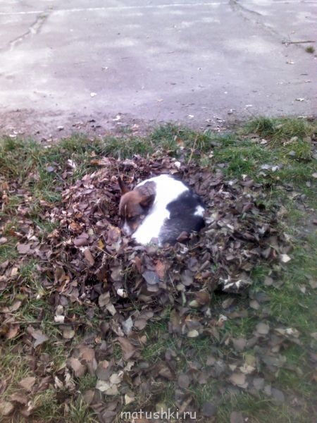 я вчера сфоткала на телефон! такая собачка в гнездышке на школьном дворе лежала...