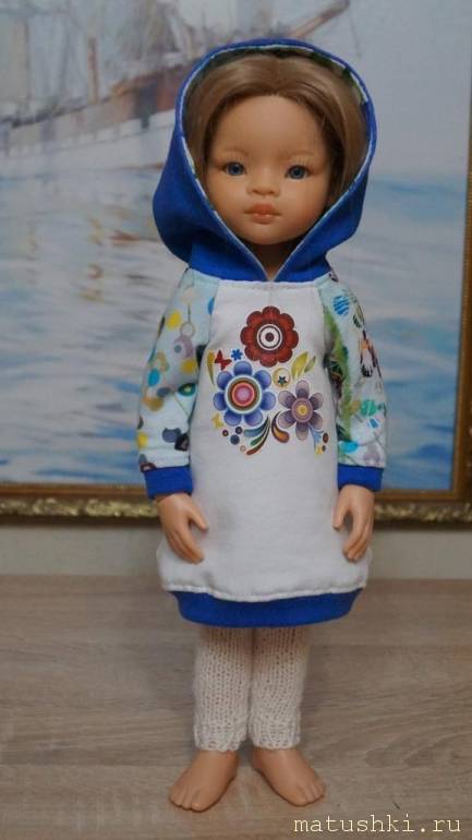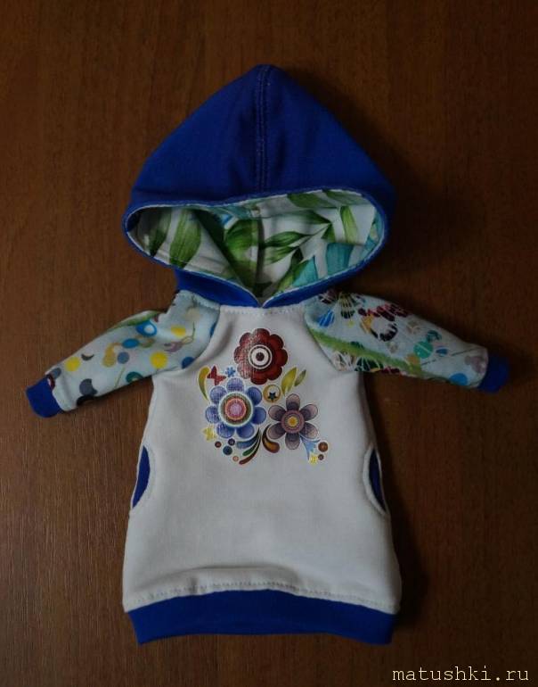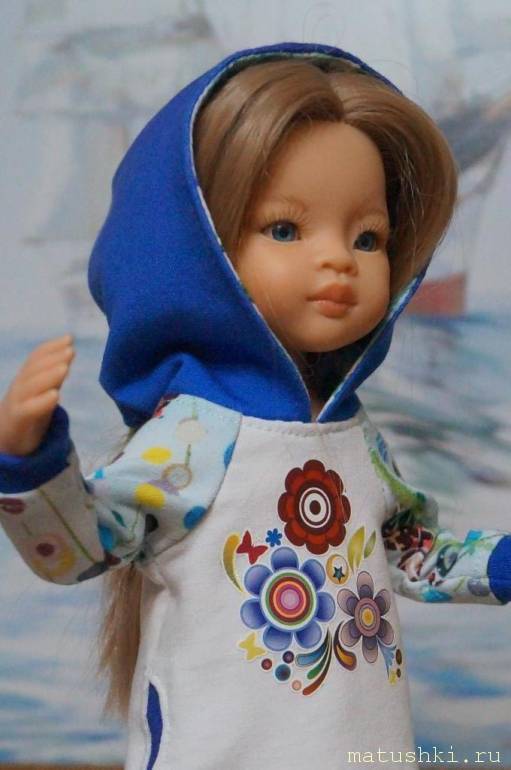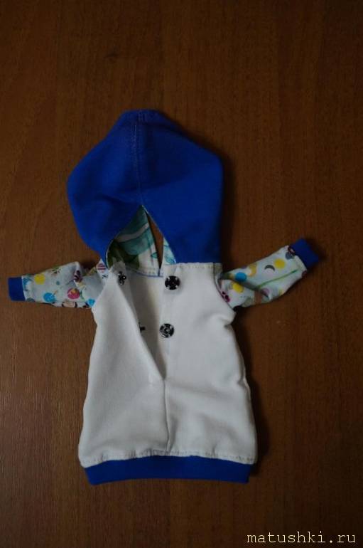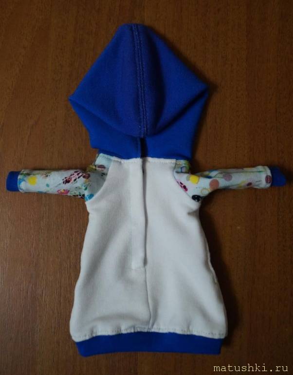 Куколка большеголовая с большим количеством волос, поэтому капюшон для удобства с разрезом сзади.