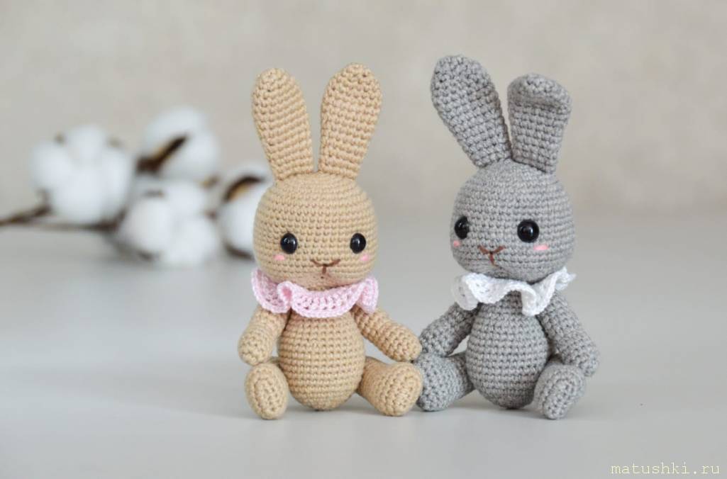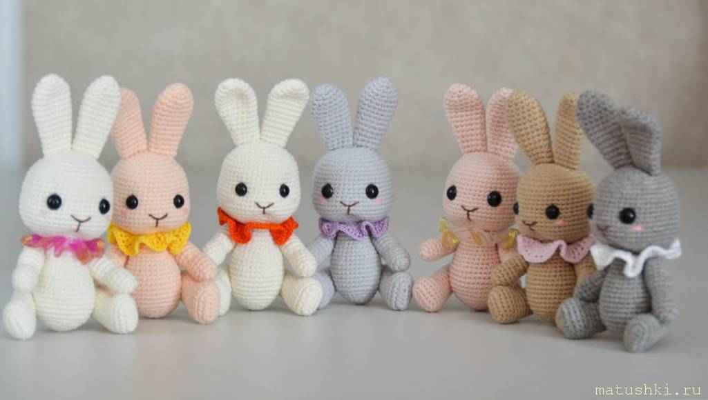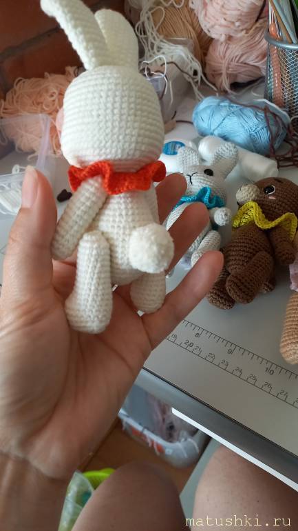 В компанию к медвежатам связала зайчиков. Все, думаю игрушек в этом году не будет