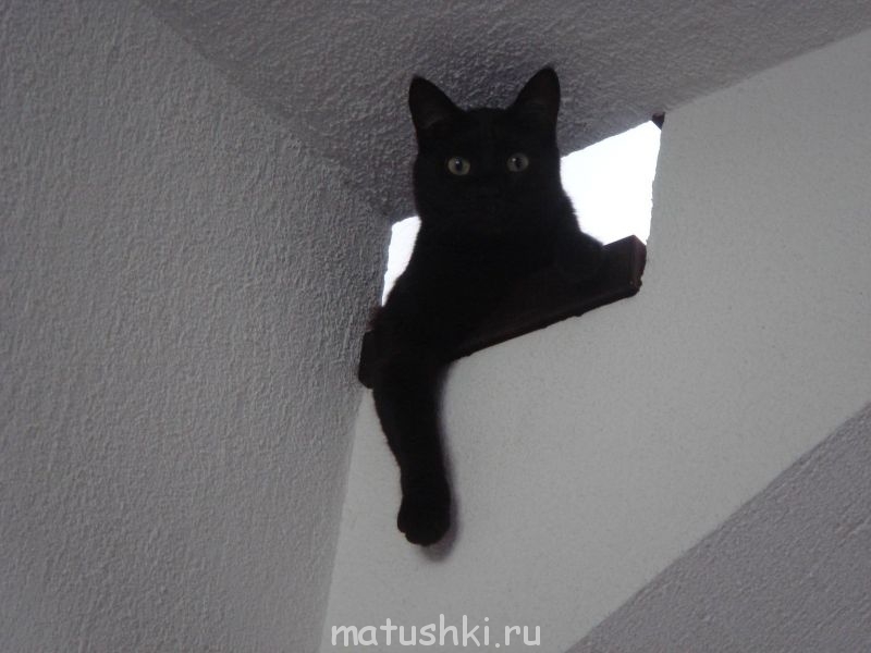 Стою как-то раз зимой на крыльце, никого не трогаю, разговариваю по телефону. Вдруг боковым зрением вижу: зашла за церковную ограду кошечка и мимо дома соседей топает прямо к нашему крыльцу. Взошла на него, смерила меня победоносным взглядом, а тут как раз дети выскочили, она - ррраз! - и шмыгнула в дом. С тех пор вот и живет