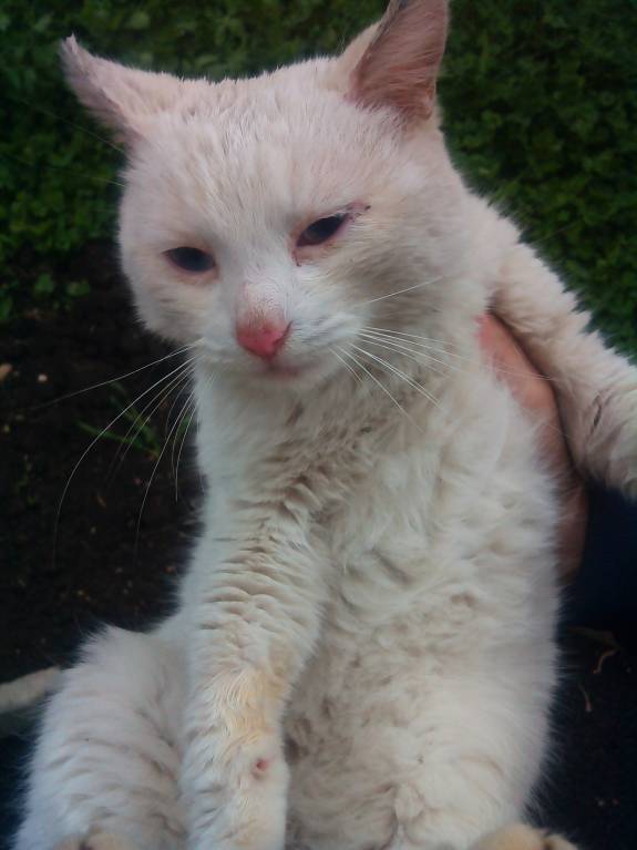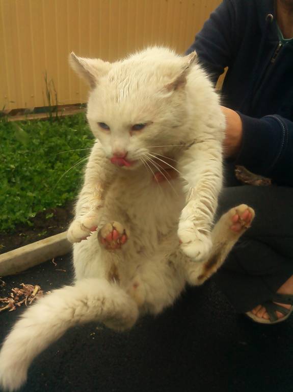 Да еще и с полным комплектом болячек:уши и шея в лишае, думаю, глисты и блохи тоже имеются,в первый же день муж из уха клеща вытащил.
