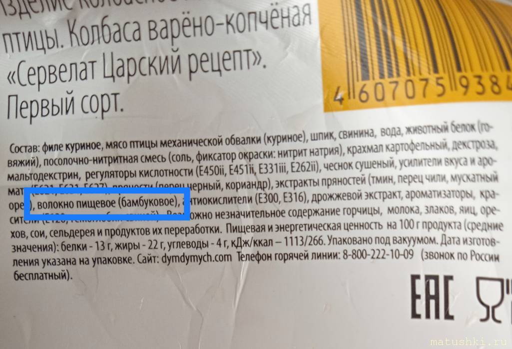 Не хочу никого пугать, все покупают и кушают колбасу, но колбаса входит в топ вредных продуктов, почитайте остальной список ингредиентов - он не лучше; все эти "ешки", стабилизаторы и эмульгаторы...