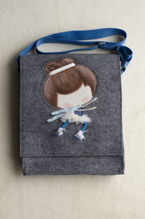 Сумочки с полуобъемной аппликацией для крестницы и её сестрички. Материал -- войлок. Коньки и шарфики связаны крючком 0,5 мм . Юбки из фатина. Ножки из шнурка. Ручки вышиты. Волосы из фетра и затонированы акриловыми красками для ткани. Размер 20х23 -- как раз хорошо входит обычная тетрадка.