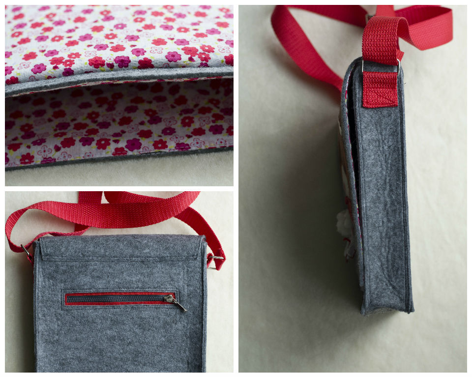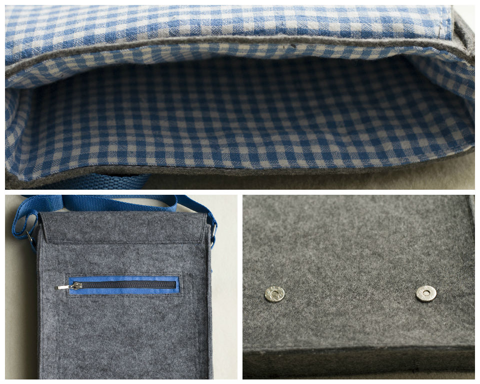 В качестве подкладки хлопок (синяя сумка) и поликоттон (красная сумка). Сзади карман на молнии. Застежка на две кнопки.