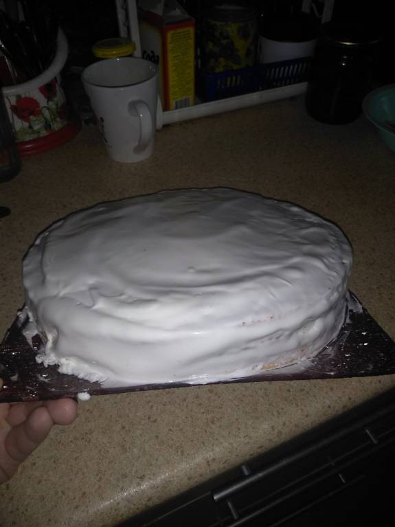 Сегодня попыталась сделать постный торт, "Елена" называется. Захотела перед отъездом порадовать девочек чём-нибудь. Вот, что получилось, но пробовать будем завтра, ему время на пропитку нужно. На вид особо не смотрите, у меня крошечек на обсыпку не хватило, обрезки коржей умудрялись таскать из-под носа