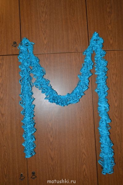 Мне Шелкопряд подарила по акции "Пасхальный сюрприз" пряжу "Фламенко", так вот недавно у меня дошли до нее руки, и я за один вечер связала вот такой шарф: