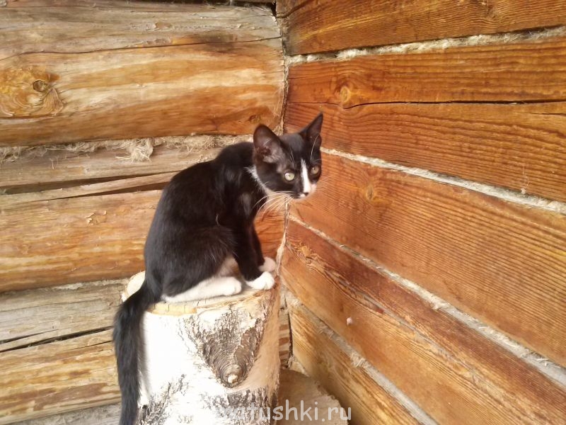 А дочка в первый же день пребывания в деревне нашла котенка и весь день с ним на улице возится Вот он: