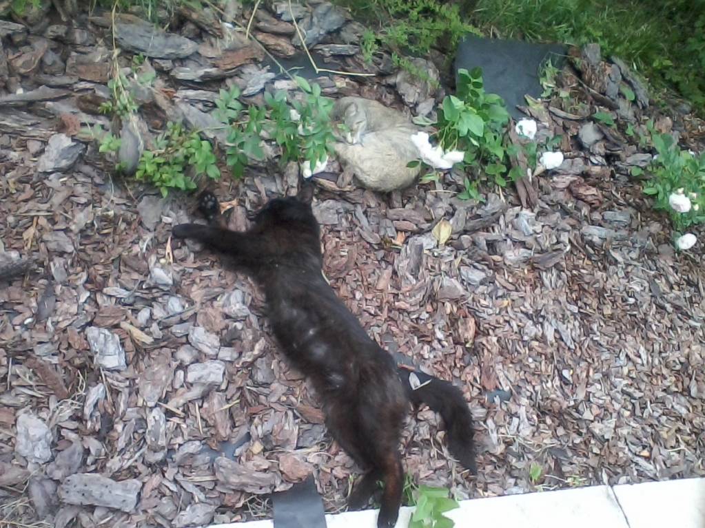 Выхожу из храма, был будний день, народу никого. Вдруг вижу, на краю клумбы, прямо у дорожки, валяется кот. Первое впечатление - дохлый. Подошла поближе, стала звать, кискискать. Ноль эмоций. Вижу, живот у него чуть колышится, будто еле дышит и сейчас дух испустит. И рядом еще серый комочек свернулся, тоже кот, как*то печально смотрит