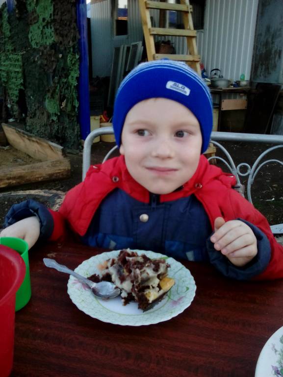 Старшему сыну торт очень понравился. Сказал всегда теперь такие торты печь. Между слоями орешки, персики.