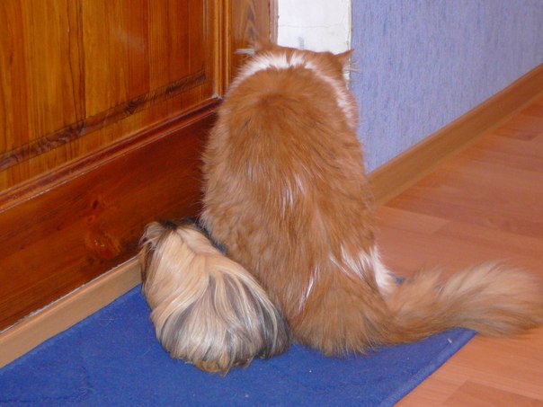 Теперь кот прикидывается собакой, все таскает в зубах, в особенности мягкие игрушки. Да, еще кота начинает посещать белка с которой он играет.