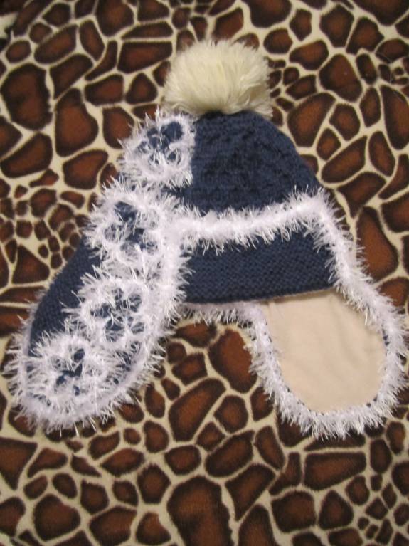 Связала две шапки. Белую себе с нуля, еще снуд к ней будет, а вторая: распустила предыдущую шапку и дочери и заново перевязала. А то она жаловалась, что ушам холодно, просила ушки, теперь довольна, плюс флисовую подкладку добавила. Балабон с прошлой шапки остался.