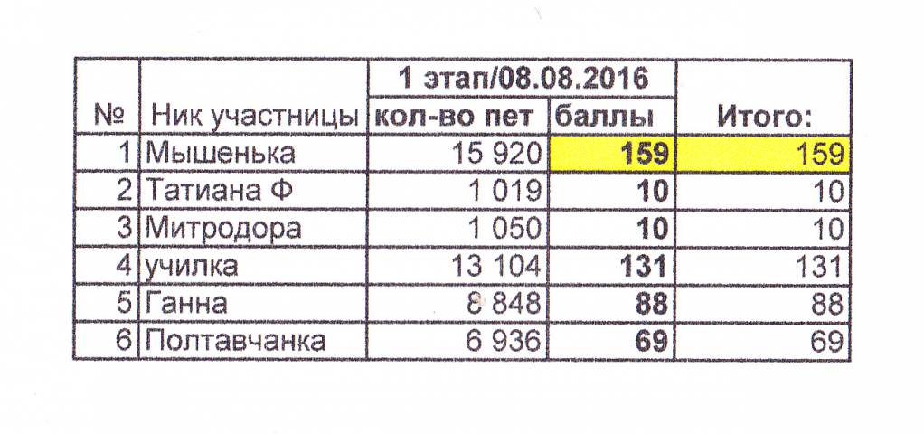 Таблица. 1 этап