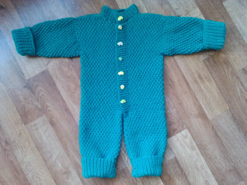 Второй этап. Довязан комбинезон, это 9648 петель и связаны пинетки, это 5288. Итого 14936 петель