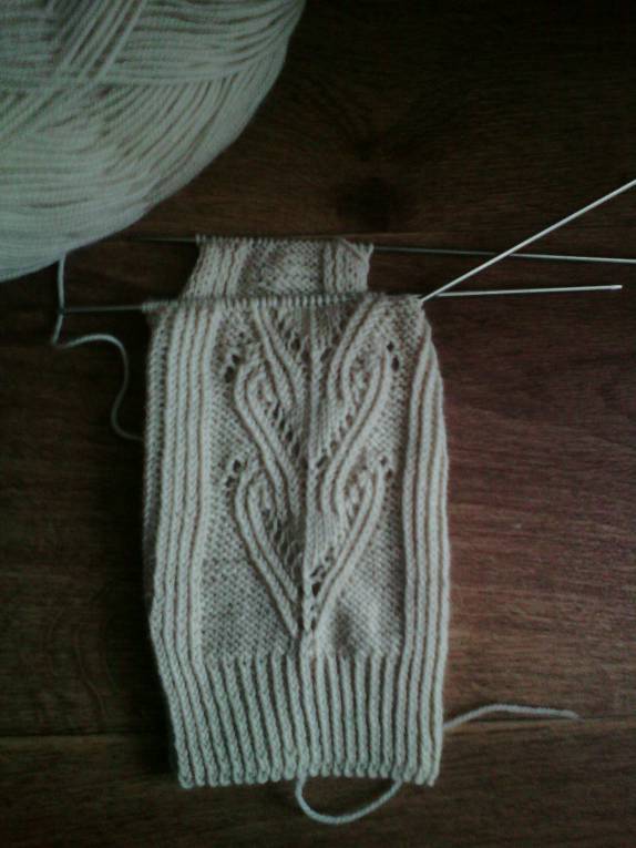 Закончила вторую варежку и начала тоненькие носочки дочке по японской схеме. Любят же японцы скрещенные петли, многие узоры построены на сочетании классических и скрещенных петель. Лицевые еще куда ни шло, но скрещенные изнаночные -