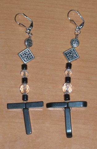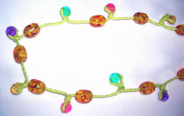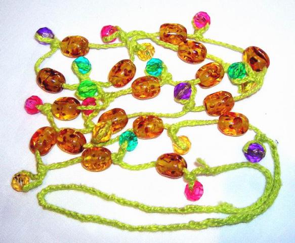 Я для себя, не на продажу, собирала вот такие серьги и бусы к разным нарядам. Серьги - вариант тех, что пошли в магазин. Бусы - вязание крючком, янтарь, пластиковые бусины, узелки макраме