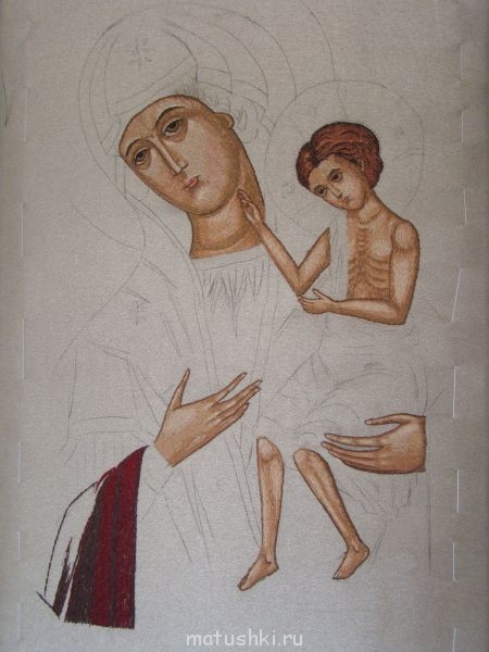 матушки,кто искал прориси для вышивки: беру любую икону, которая нравится,(даже маленькие ламинированные можно) иду в ближайшую фотомастерскую( че-то не соображу, как они правильно называются) и там изображение увеличивают в 2-3-4 раза, до нужных размеров, у них есть большие принтеры. Напечатают по желанию цветным или черно-белым. Все