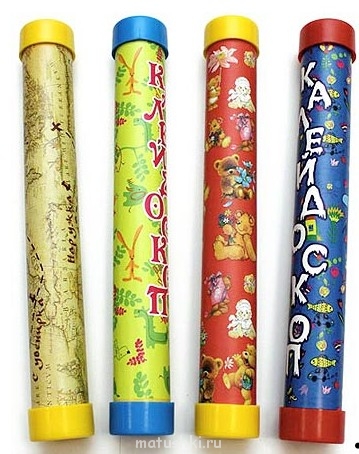 Я тут летом своему дитятупила калейдоскоп. Вообще без пластмасок и без стеклышек. Работал он просто: оказывается нужно было направлять взгляд на что-нибудь разноцветное. Вот это-то разноцветное и создавало узоры. На конце была линза. Вообщем что только не выдумают. Мой ребенок сказал что в такой калейдоскоп можно смотреть только летом когда солнышко светит. А зимой он будет следующего лета ждать.