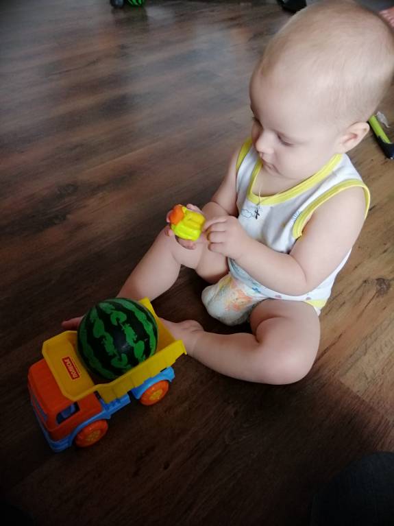 Итак Федор получил в подарок машинку -грузовик фабрики Полесье. Теперь будет возить в ней арбузы