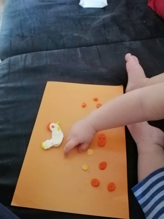 Арсению достался шикарный набор воскового пластилина 24 цвета. В упаковке его очень много - хватит всем. Пока Арсений лепит улиток, Федор "кормит курочку".