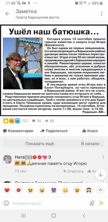 Епархия не пишет, пишет городская газета и ещё в разных группах