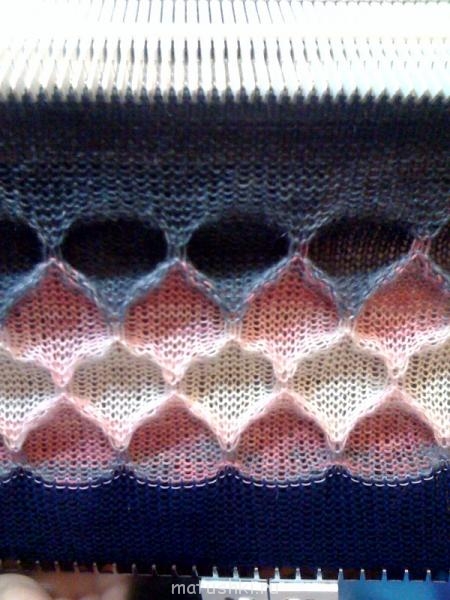 Первый ряд -= набор - она делает сама. А дальше не вяжет. Но это что-то надо в каретке передвинуть, какой-нибудь рычажок. А в инструкции много чего не написано. Р-р-р-р...