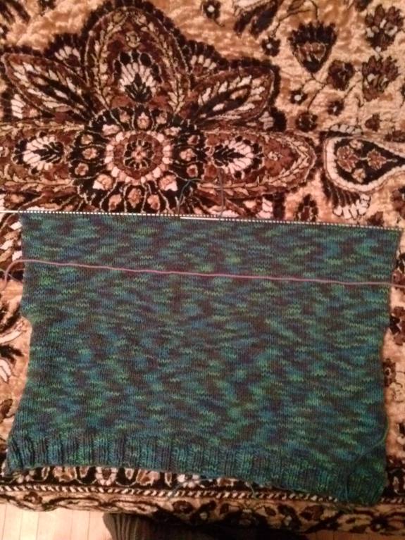 Начало спинки синего свитера- 3.648 петель.