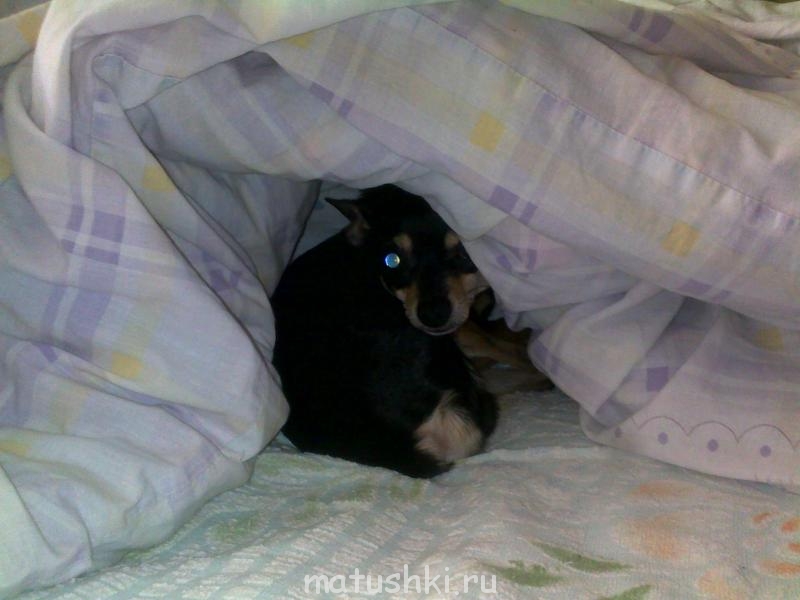 А этой мой тойчик Кубочка выкопал пещеру в одеяле и залег там как волк