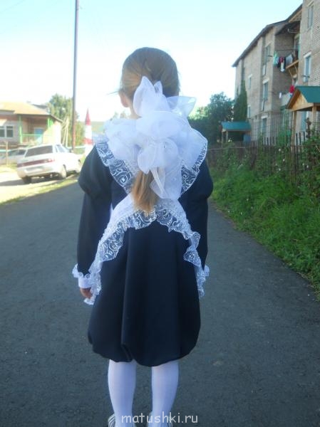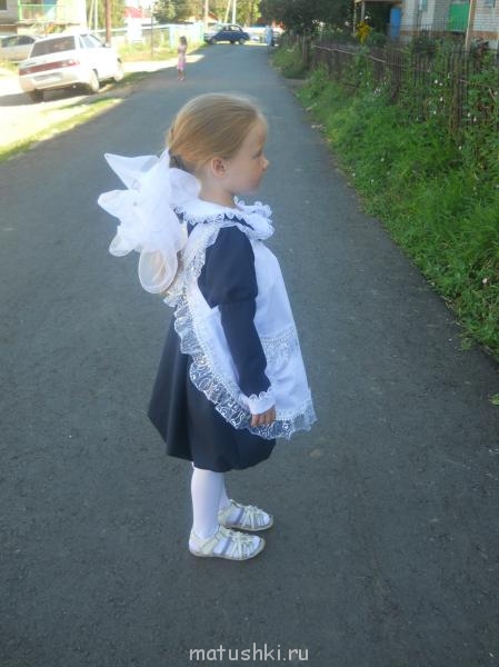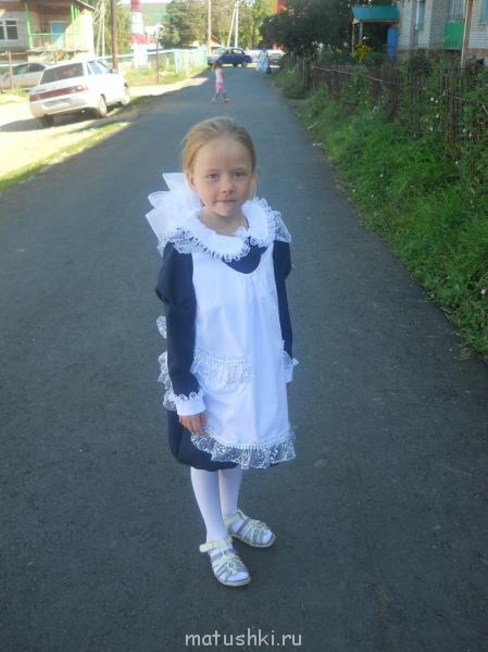 Вот сшитая форма для 1 класса- ученица давольная.