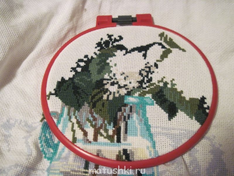 Простите снова за поздний отчет, никак не успеваю по пятницам, обязуюсь это исправить. У меня 512 крестиков, полукресты не считала. начала вышивать белую сирень, первую веточку в букете