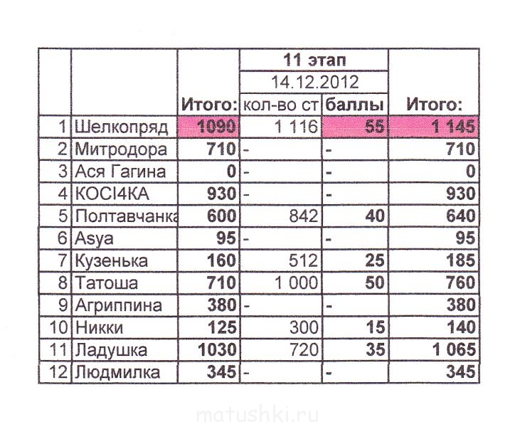 Таблица, 11 этап