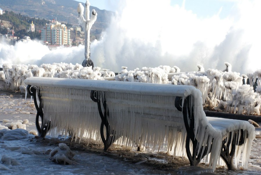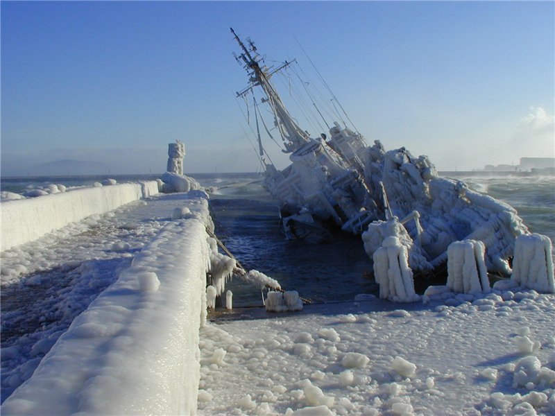 Ну и море не замерзает, бывает ледяной шторм и обледенение причалов.