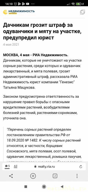 Хотят ввести штрафы за одуванчики и др.сорняки на дачных участках