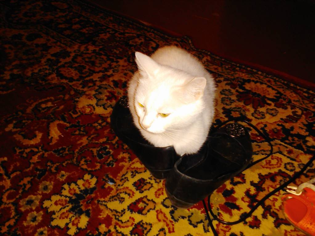 Муся мои домашние туфельки примерять любит, только вот развернуться забыла.