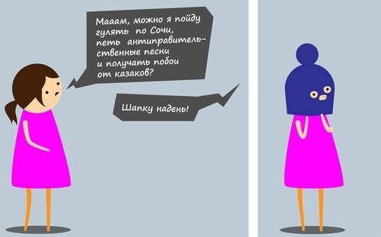 http://www.gazeta.ru/social/news/2014/0 ... 9217.shtmlКак написала в своем твиттере Толоконникова, «у баннера СОЧИ 2014 под песню «Путин научит нас любить родину» на Pussy Riot напали казаки». Она отметила, что нападавшие били участниц панк-группы плетками и «обильно поливали перцовым газом».